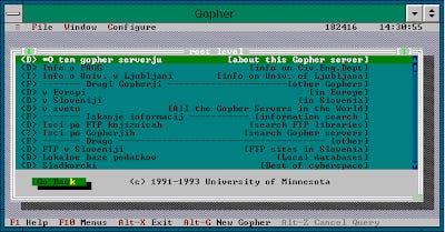 Slika 1: Tako je bil videti "home page"na Gopherju. Prilagojen