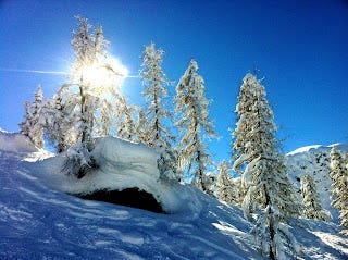 Če boste na jasen zimski dan fotografirali zasneženo pokrajino, bodo barve na sliki vlekle v modro. Natančneje povedano, površine snega, ki so v senci, bodo na sliki modre barve. Ko smo bili tam, se nam je tisti sneg zdel bel. Vse okrog nas je bilo belo.
