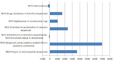 Na prvi pogled se zdi svetla točka rast strokovne, znanstvene in tehnične dejavnosti, ampak, ko pogledamo bolj podrobno, ne kaže, da bi šlo za razvoj, ampak smo zakomplicirali računovodstvo in pravne postopke, pa več ljudi upravlja in svetuje pri upravljanju.