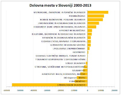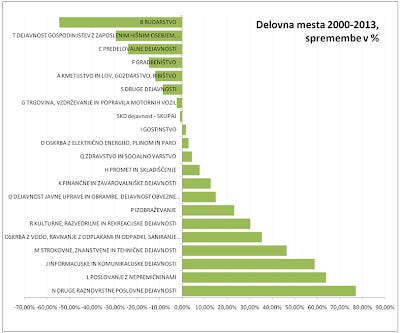 Delovna mesta so izginjala v zasebnem, materialnem sektorju, tam, kjer se nekaj otipljivega naredi. Delovna mesta so nastajala v javnem sektorju na splošno in nekaj malega v ne-materialnem zasebnem sektorju belih ovratnikov.