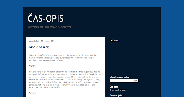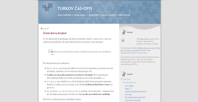 Nova oblačilaŽiga TurkFeb 02, 2017ShareBlog pišem od marca 2007. Vsebina ostaja ista. Ob desetletnici času primerno spreminjam obliko. Radikalno drugačna je od Siola in Časnika, kjer v glavnem objavljam.Tako je bil blog videti nekoč:Izgled 2007-2011.Izgled 2011-2016.PreviousNext