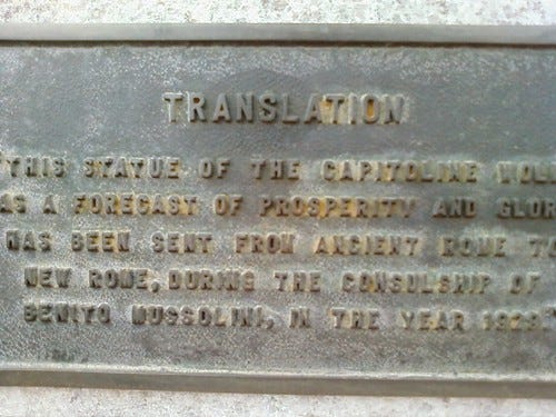 Prepričan sem, da Musolini ni samopašno zahteval, da se na stavbe, mostove, kipe, ki so bili postavljeni v njegovem času, zapiše, da je bilo to narejeno pod njegovim konzulstvom. Je pa vzpostavil klimo, v kateri so vedno prilagodljivi investitorji čutili, da je pametno, da se nekako uguzijo velikemu vodji. In so sami od sebe na objekte postavljali temu primerne table.
