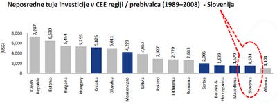 Pri neposrednih tujih investicijah na prebivalca Slovenijo prehiti še Albanija.